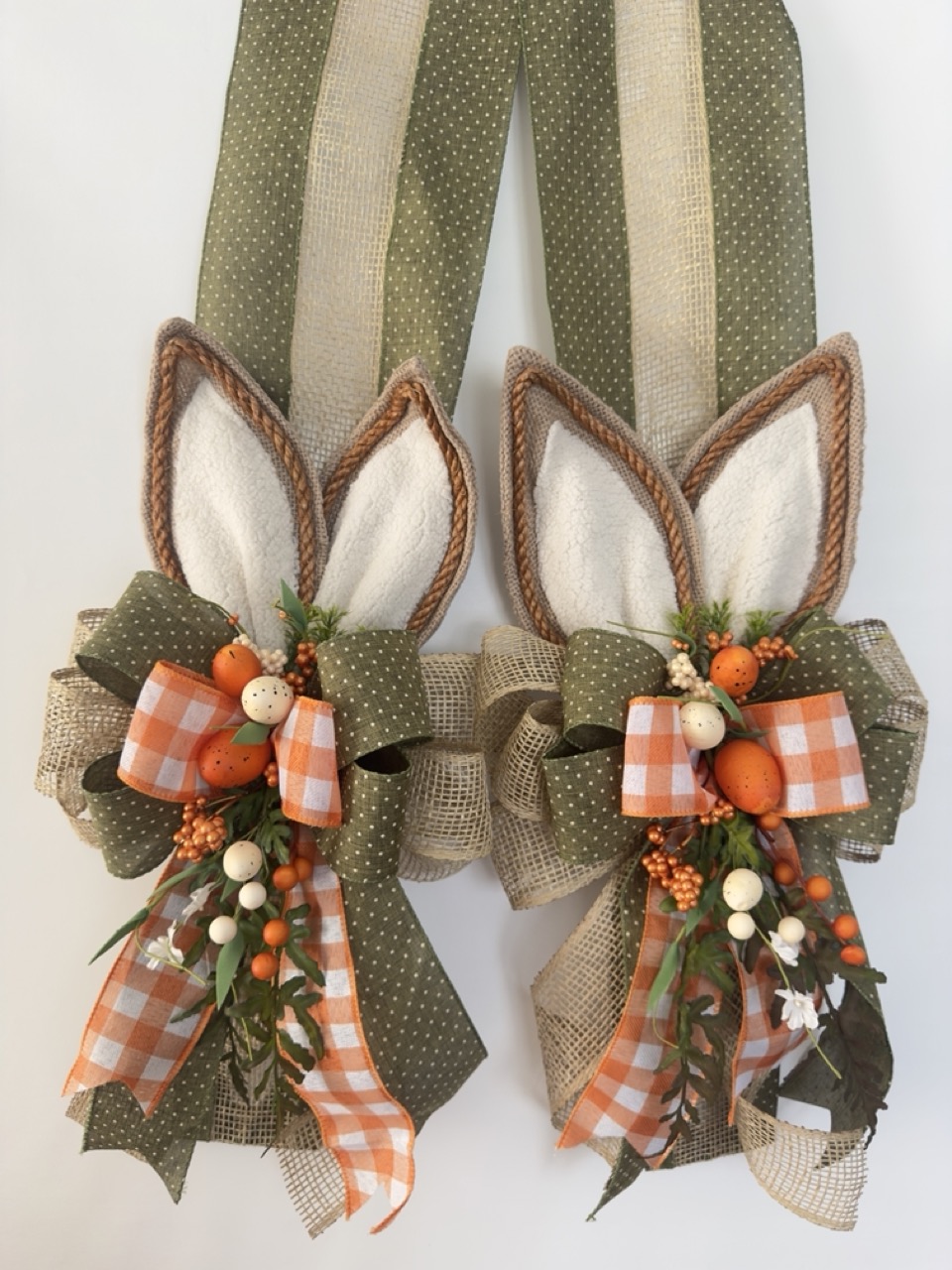 Escapulário feito com fitas, com orelhas de tecido e corda, picks e laços. Possui dois lados iguais.